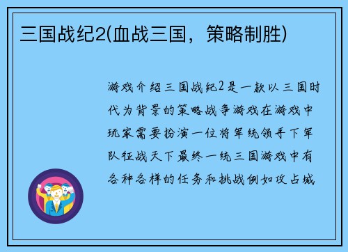 阅读三国无双3下载(下载三国无双3,畅玩经典战斗场景!)三国无双3是一款由光荣公司开发的动作类游戏,在游戏市场上备受玩家们的喜爱。本文将从游戏简介、游戏特点、玩法介绍以及下载方法四个方面详细介绍这款游戏,...
